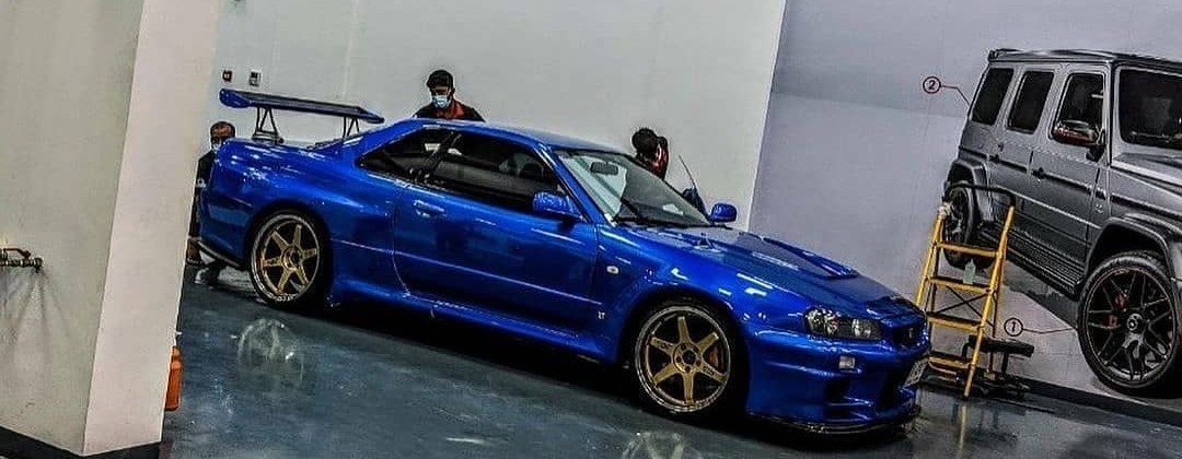 Más leyenda Japonesa. Este Skyline posee 560 caballos de potencia en su interior, un alerón racing, cambio de llantas, reducción de peso. Azul brillante.